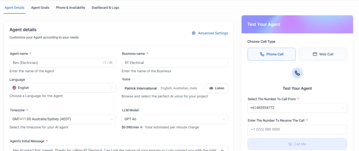 Whether it's a missed call, after-hours, or weekend inquiry, the AI answers instantly using your dedicated TradeAi number.